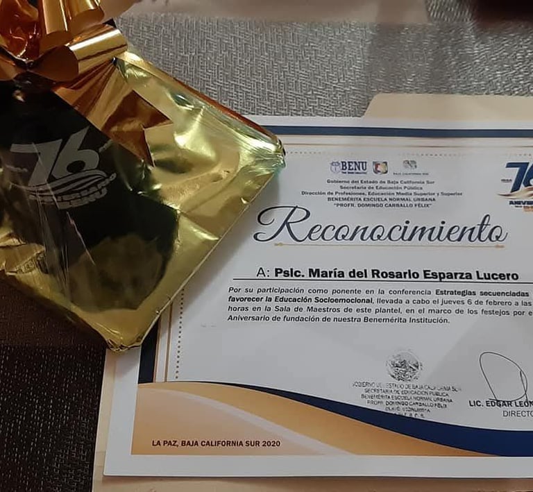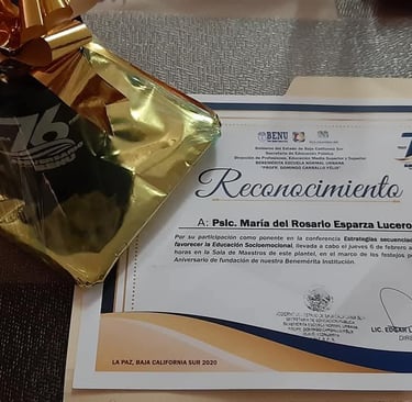 Reconocimiento por participar en la conferencia "Estrategias Secuenciadas para Favorecer la Educación Socioemocional"