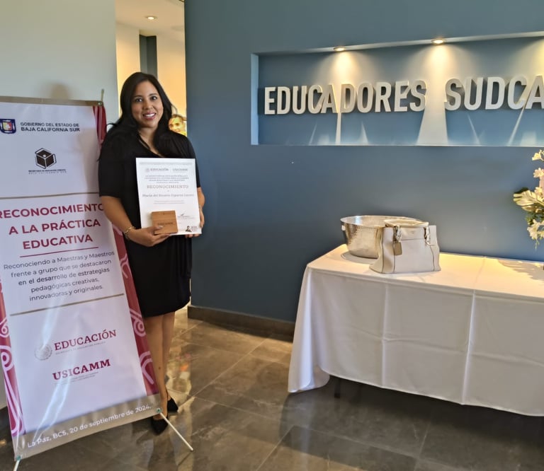 Reconocimiento a la Práctica Educativa 2024 en Educación Básica, destacando en el desarrollo de estrategias pedagógicas creativas, innovadoras y originales.