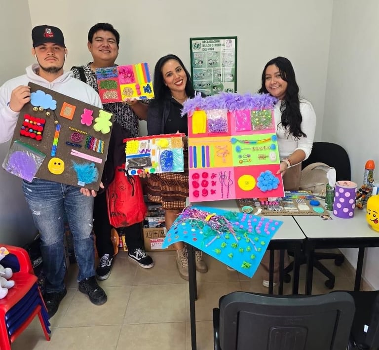 Mtra. Rosario Esparza. Elaboración de tableros sensoriales por parte de estudiantes de la Especialidad en Psicología.